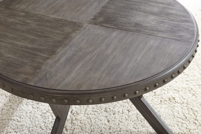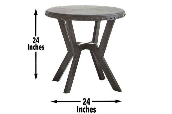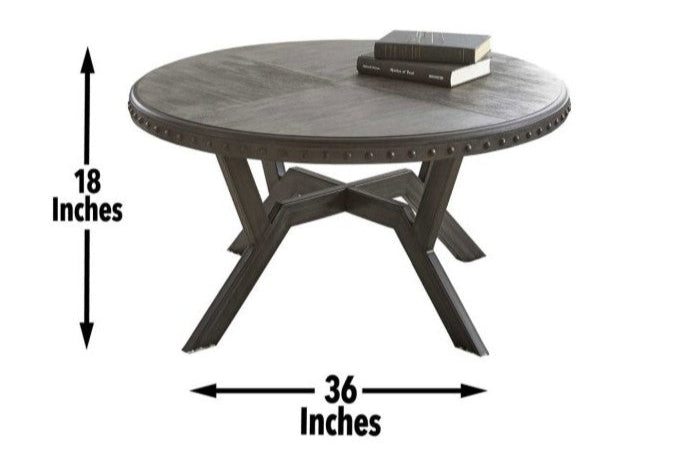 Add a touch of industrial charm to your living space with our Alamo Coffee Table Set. Featuring a gray finished top that pairs perfectly with the weighty metal base in a matching gray finish. The metal table rim adds a unique exposed rivet look while the geometric base adds an architectural feel to this stylish set.
