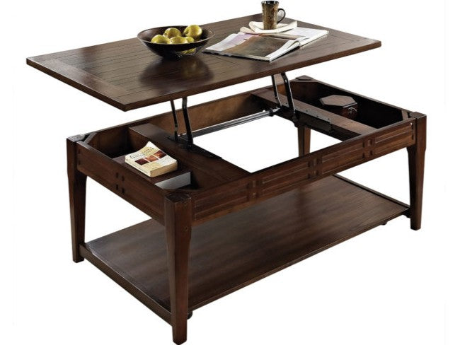 The Crestline Coffee Table offers classic style with hidden storage and versatility. The lift top provides additional storage and a convenient work or dining surface, while the bottom shelf and casters add functionality. Pair with the Crestline end table and sofa table for a cohesive look. Take your living space to new heights with this bold and practical piece!