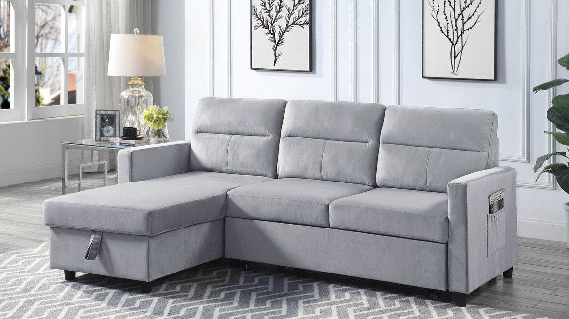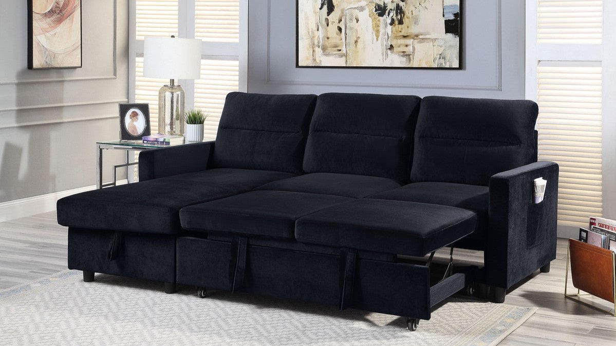 The Ivy sectional with sleeper is a fantastic example of contemporary design. Not only does this stylish set feature a reversible chaise but it also transforms into a pull-out sleeper for overnight guests. The storage chaise offers plenty of space under the seat for throw blankets and pillows, and the safety hinge and pull loop make the lifting and closing of the storage space easy and convenient. Ivy also features tight back and seat cushions which keeps your living area looking neat and fresh.
