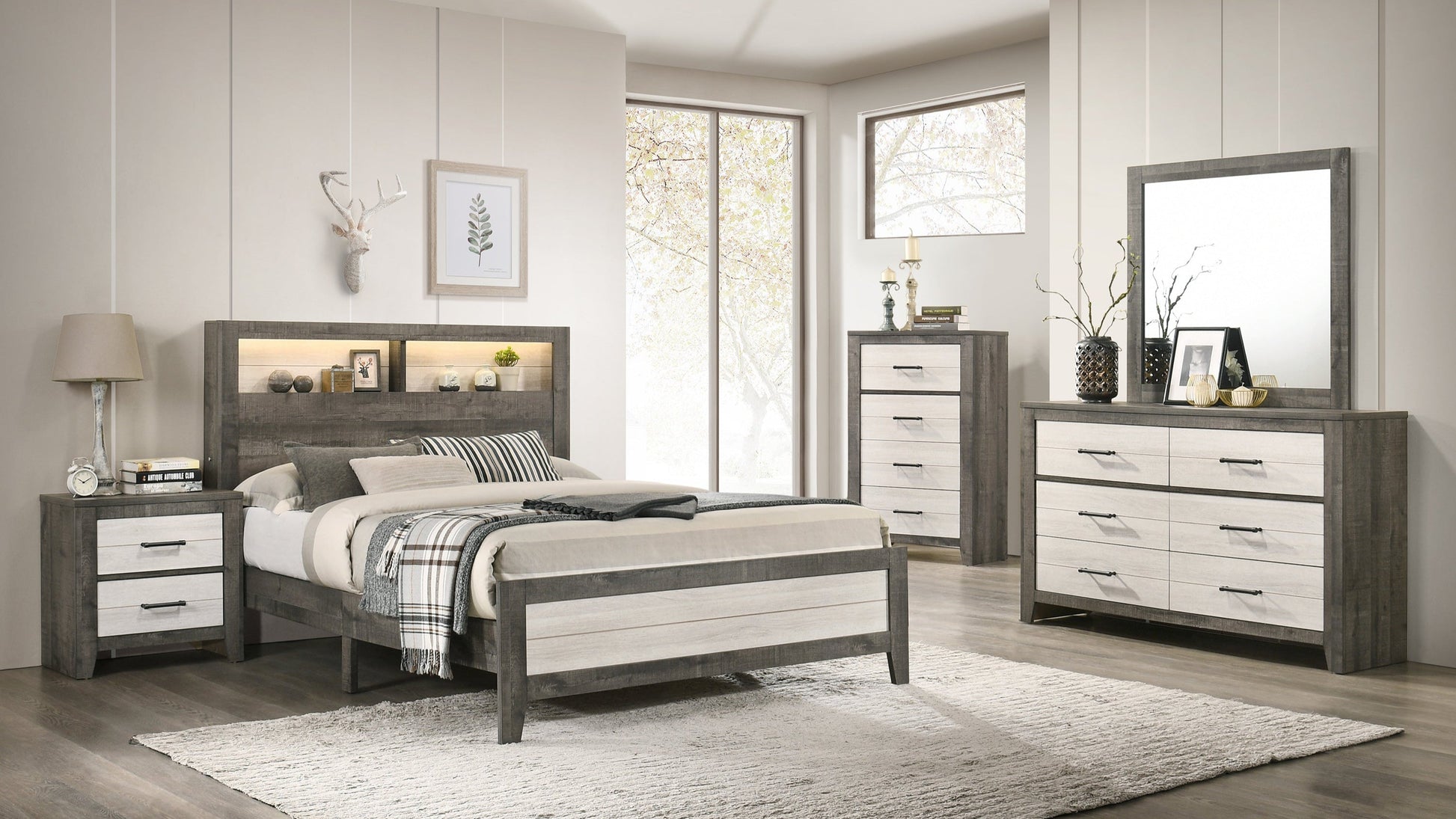 Conquer your clutter with the Rhett Chest! This bold and stylish piece boasts a two-tone grey and beige design with metallic hardware, adding a touch of risk-taking to your decor. Made of high-quality laminate, it features smooth-gliding drawers for maximum convenience. Dare to elevate your storage game with the Rhett Chest!